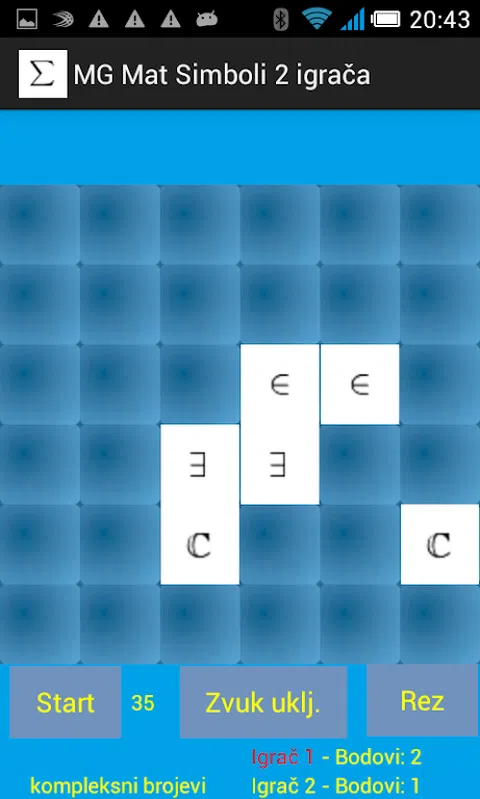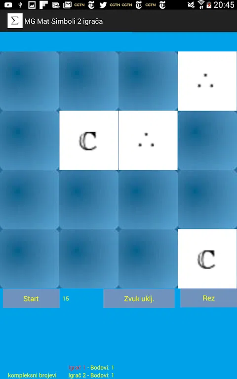 两名玩家的带有数学符号图片的记忆游戏