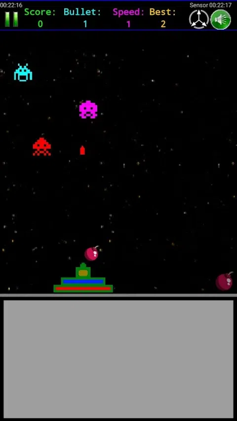 《Space Invader 2D》是一款太空格斗游戏。这个游戏是由2D像素创建的。在这个游戏中你将获得2D像素太空船。太空外星人和大量的动画和声音效果。游戏启用了陀螺仪审查。你需要移动正确地移动你的手机来移动你的飞船。你可以发射无限的子弹和一些特殊的光束。敌方的飞船会向你开火。你必须杀死敌人才能获胜并获得高分。你可以获得苹果和红心作为升级。如果你与炸弹相撞或外星飞船然后游戏就结束了。小心主外星飞船。玩得更多得分更多