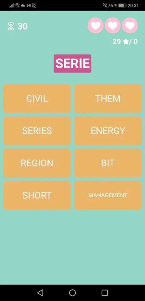 'Veasy' 是一款有趣的学习英语词汇的游戏。您可以在简单和困难模式下玩,直到完成所有级别,您还可以衡量您的知识并查看随着时间的推移您的进步程度