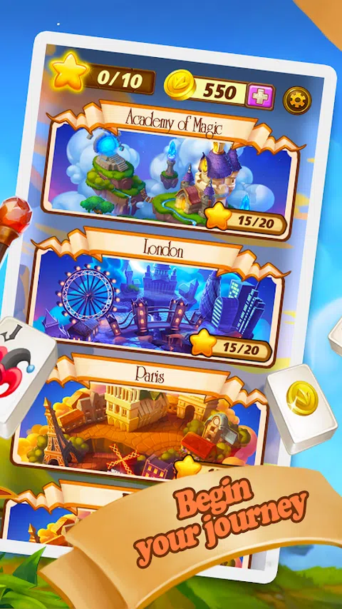 立即下载,启航进行神奇的冒险!伦敦、罗马、巴黎和其他城市都在等待并准备就绪!您是否曾经想参观比萨斜塔、大本钟或卢浮宫?您所需要做的就是开始玩!无论您有5分钟还是一个小时的空闲时间,您都可以依靠麻将来保持活力。匹配图块,解决不同的布局并环游世界! 麻将:魔法岛 - 闪电战是一款令人兴奋的免费游戏,适合任何想要打破常规并投入到新的有趣事物中的人。麻将的规则简单易懂,适合所有年龄段的人,令人惊叹的外观和适合任何年龄段的各种图块使这款游戏真正令人难忘。你永远不想放下它