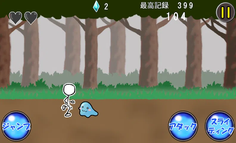 通过跳跃、滑行和攻击来躲避森林怪物 这是一款以未来为目标的跑&跳游戏。 没有特别困难的操作,非常适合打发时间。 你可以通过收集水晶来增加你的体力和跳跃力。 你也可以双跳。 【怎么玩】 - 通过跳跃或滑动来躲避敌人。 “你可以踩着怪物打败它们,但你不能踩着石头或箭。” ・无法回避时,可以用攻击打倒敌人。 “使用后一段时间内不能使用攻击,尽量保存。” ・体力会自动一点点恢复。 ・让我们通过升级来提高能力。 “体力”体力心数会增加。 “恢复” 体力自动恢复速度增加。 “跳跃”你的跳跃力会增加。 “攻击”使用攻击后的冷却时间缩短。 “双跳”你将能够在跳跃时再次跳跃