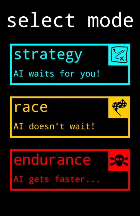 Line Game是一款独特的2D游戏,具有简约的图形。分阶段添加到您的行中以在屏幕上前进。目标是在对手到达你的身边之前到达他们的身边。 随着游戏的进行,发现超过60个不同的关卡,随时解锁它们。从三种不同的模式中选择。 游戏模式: ☆ 策略模式(放松;每次移动都需要花费尽可能多的时间) ☆ 竞赛模式(不要那么紧张!) ☆ 耐力模式(持续到你输了,尝试击败你的高分) 完成每个级别会奖励星星。这些解锁更多线条颜色供您选择,以及超快版本的竞赛模式! 提示: 您可以阻止对手到达您的身边,但要小心,因为他们可以对您做同样的事情! 该游戏在构建时同时考虑了平板电脑和手机,因此可以在各种设备上体验。 享受