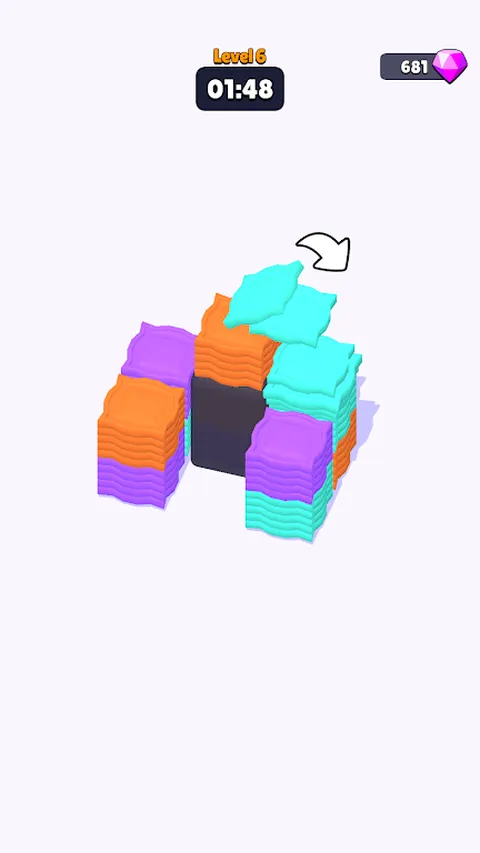 欢迎来到激动人心的“Tile Shuffle: Color Sorting 3D”游戏!您的目标是根据颜色堆叠彩色图块,对它们进行分类。将所有颜色的单个颜色堆栈中的 10 个图块分类,以完成关卡并继续下一个挑战。 但有一个问题—你在与时间赛跑!在时间用完之前对所有图块进行排序。随着您的进步,洗牌变得更加复杂,具有更多种类的颜色和特殊图块类型,解锁新机制以保持游戏玩法的新鲜感和吸引力。 探索充满活力、丰富多彩的关卡,解锁新的图块设计,并测试您的技能,与时间赛跑,成为图块分类大师! 主要特点: 明亮多样的关卡,洗牌难度不断增加 解锁并收集独特的图块设计,以获得更刺激的分类游戏 基于时间的挑战:快速准确地排序! 你的速度和精确度将是你最大的资产。您准备好迎接 Tile Shuffle 中的颜色挑战了吗?