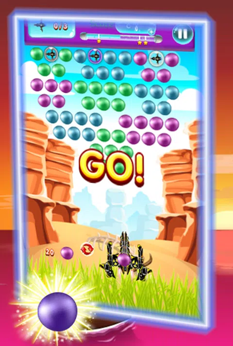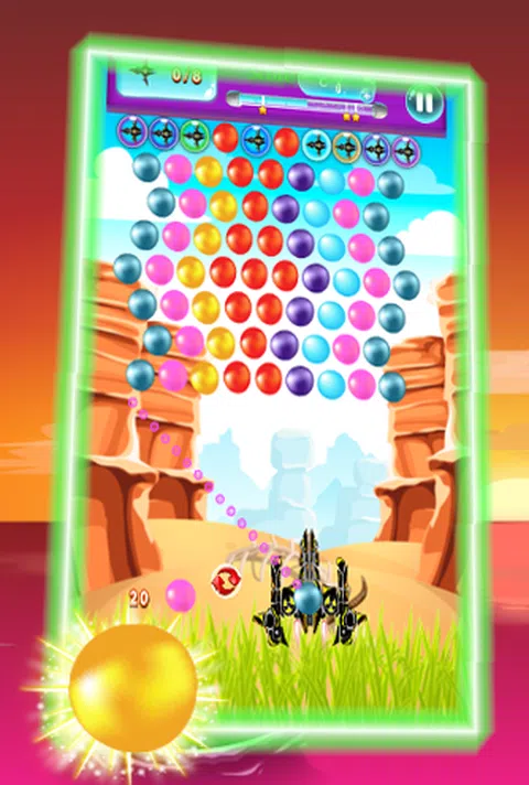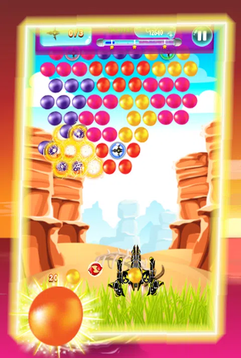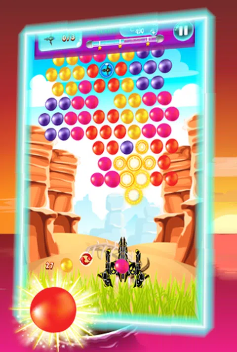 清除所有气泡即可赢得比赛。 该游戏有豪华美丽的彩色泡泡可供您玩泡泡射击 怎么玩: * 点击你想发射泡泡的地方 * 将 3 个或更多泡泡组合在一起,使它们破裂 * 清除屏幕上的所有气泡即可升级,并尝试在每个级别获得 3 颗星