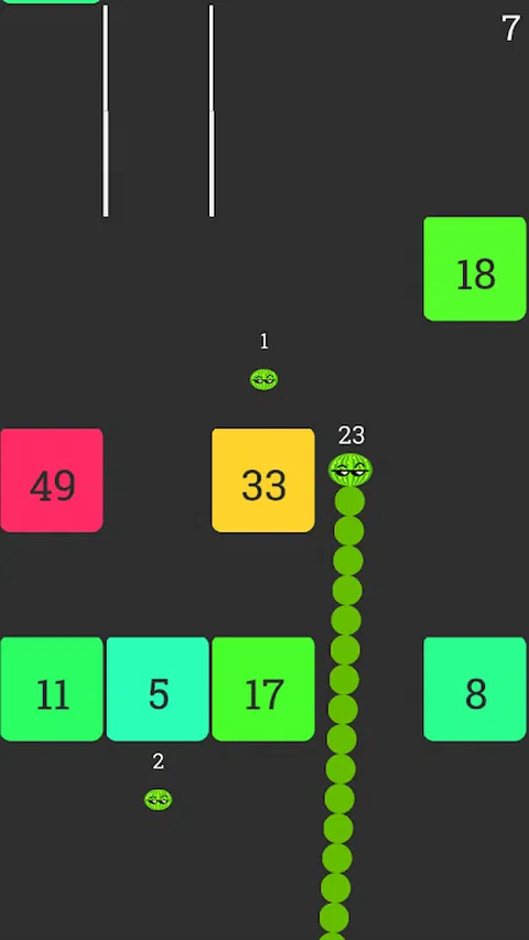 《blocks Crash》是一款免费的令人惊叹的球游戏,关于制作一条大球蛇和碰撞块。 蛇是由彩色球组成的。当你吃掉沿途的其他球时,蛇会变得更长。 但这并不那么容易。你必须注意大数字块。 玩法:方块碰撞 - 用手指触摸屏幕并向左或向右滑动以移动滑行的蛇球。 - 吃路上的球来增加蛇的长度。 - 当你的蛇尽可能地活着时,分数就会增加。 - 避免高强度块。 特点:块崩溃 - 简单的界面 - 多个球皮肤 - 高分 如果你喜欢玩方块碰撞游戏