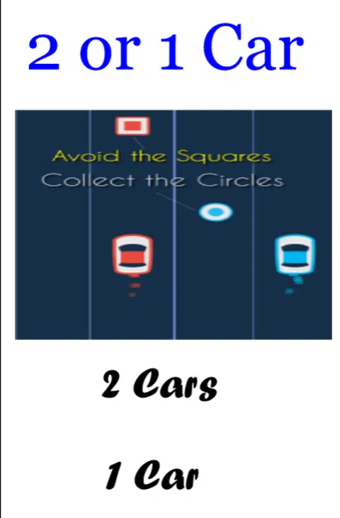 躲开广场。如果你与它碰撞游戏结束。 把所有的圆圈。如果您错过了一场 GAME OVER。 玩“1 CARS”或玩“2 CARS”,“2/1 CARS”的规则保持不变 “2/1 CARS”是一款令人惊叹的游戏,需要您全神贯注地玩游戏并让两辆车保持在正确的轨道上。类似于用双手书写(Ambidexterity)。 它缺乏高图形,但它的好处是游戏既不会滞后也不会崩溃。 比 2CARS 更好的游戏玩法