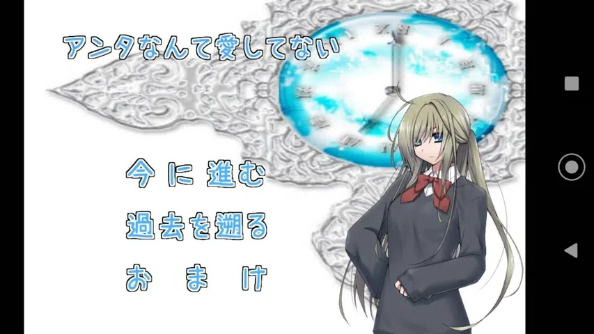 ■提示 ①总共有10个END,但是只有一个结局,因为这是一场死局。请放心,只有结尾会带来美满的结局。结算后,结语是额外的奖励。 *在那之后可能会有更多隐藏场景的奖励.! ? ②没有描述,但是它是一个死游戏,因此推荐给喜欢DEAD END的人。 ③有很多选择,但是这是一条直路,因为这是一场必死的游戏。 ④这是一段时光流逝的学校爱情,但不是死亡,它不是和平的事物。 ⑤我认为这是一项轻松的工作,因为即使您死了,它也可以追溯到过去。 ⑥进行名称转换。 (如果您不能轻易输入,点击文本框的底部通常会做出反应) game这个游戏是水平的。 ■概要 “我不爱你-” 她不仅仅是朋友,还是情人。 我失去了她所爱的人, 我想知道最后这个词是否正确。 带着她那神秘的手表作为纪念品, 我试图回到过去,改变与她的命运,但是- ■打法实例 “在第一周,您可以不死而捕捉吗? 』(虽然有不可避免的死亡) 即使您死了,您也可以回头问:“您是否将从头开始收集所有端点? “(所有都可以在第一周收集) 最后,“在结语之后是否出现了隐藏的场景! ? ] 有3种游戏方式! 如果您通过收集所有END在第一眼看到隐藏的场景,那就太了不起了