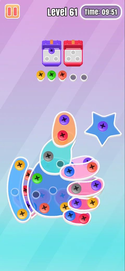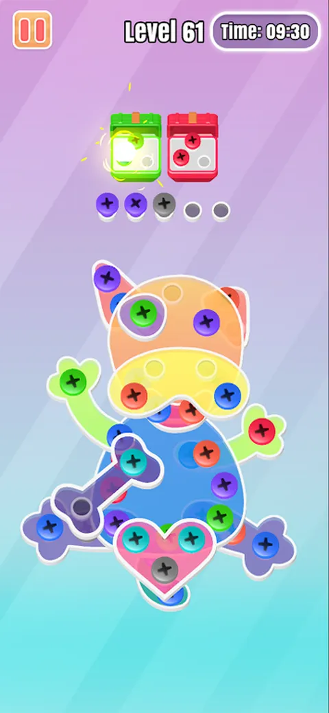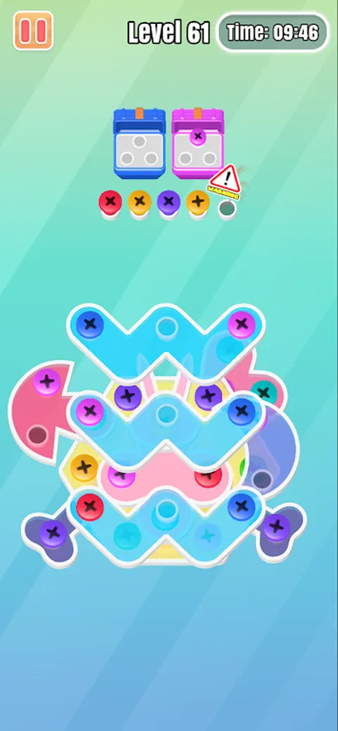 欢迎来到螺丝大战:拯救坚果的世界,享受无尽的乐趣!在这里,你将成为一把螺丝刀!负责拧开每个放错位置的螺母并将它们放回原位!看似简单,其实暗藏玄机。这是对你智力水平的检查和测试! 在螺丝大战:拯救坚果中,挑战并提高您的问题解决能力!在由螺母和螺栓组成的图像中徘徊,为了将它们完美地返回到正确的位置,您需要不断地制定策略和计划动作顺序。 在游戏中,你需要注意坚果的走向,有时还需要善用力学的方向,在合适的时机拧开坚果。否则,拧下的螺母将成为您的障碍。 随着新关卡的不断解锁,图像的难度会越来越高,但这也会对你的大脑锻炼产生巨大的影响!所以别担心,你远比你想象的更强大! 现在,如果你想利用闲暇时间来锻炼你的脑力,那就下载《螺丝大战:拯救坚果》,加入我们吧!