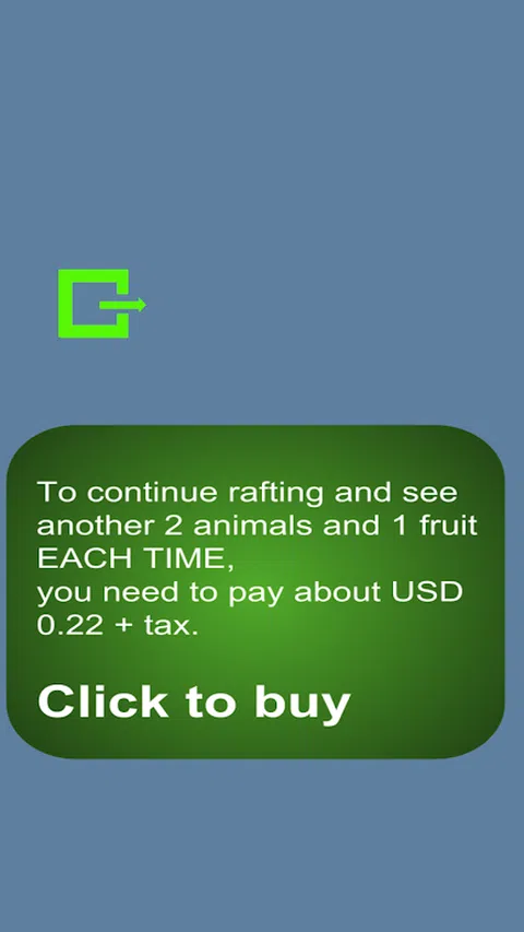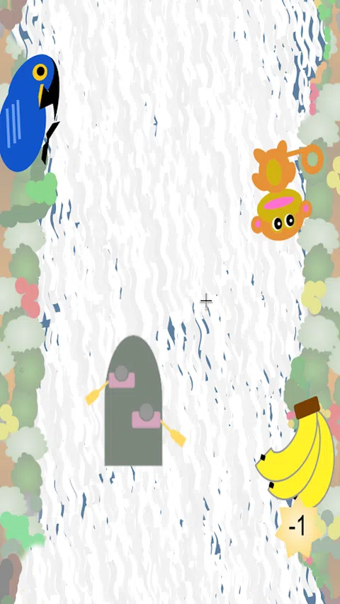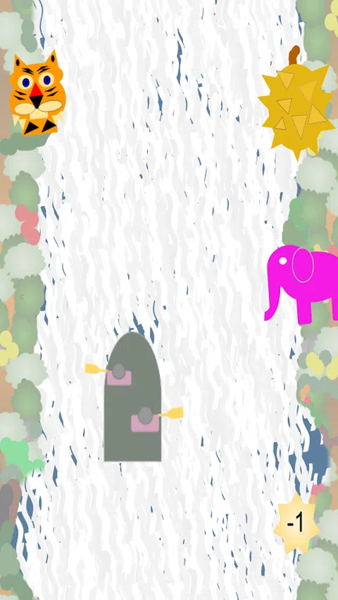 这是一个非常简单的游戏。 免费:你会看到岩石、香蕉、猴子、鸟。 岩石:将船拖/放到左侧以避免岩石。如果您的船被岩石击中,您将获得 -1 分。 香蕉、猴子、鸟:触摸每一个,各得 1 分。 应用内购买:每次您需要支付约 0.22 美元 + 税费。 你会看到岩石、大象、榴莲、老虎。与上面相同的点计算