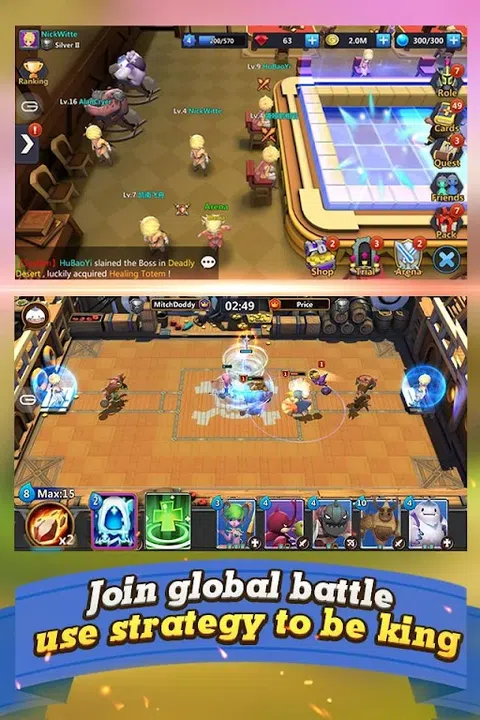 特征 *独特的游戏玩法和系统* 丰富的角色增强功能,从基本法术等级到时尚到进化。 玩家还可以创建个性化的套牌进行部署。在最关键的时刻部署英雄并激活他们的技能将帮助你赢得战斗。 1)角色进化:角色的属性可以通过进化来升级。新天赋将在特定时间解锁。 2)法术系统:与卡牌类型不同,法术可以在实时战斗中释放,关键时刻使用法术将帮助你赢得战斗! 3)时尚:有不同的时尚供你尝试,让你看起来很特别!与您的朋友分享塔文的新面貌! *团队地下城* Boss战-团队PVE。这需要你和队友的良好配合。不同的副本有不同的机制,击败Boss并获得奖励! 1)甲板。团队PVE中每位玩家可以部署一名英雄和三名战士。制作自己的特殊牌组,与队友合作击败Boss! 3)地图机制。地下城中会掉落特殊物品,你需要捡起它们并用来对抗Boss! *炼金术和生产系统* 1) 冶炼厂系统。玩家可以在特定时间领取免费金币和蓝晶石。冶炼厂还可以升级到更高级别来索取更多免费材料。 2)生产系统。玩家可以通过炼金系统生产游戏中必需的物品,包括药水、进化材料和碎片