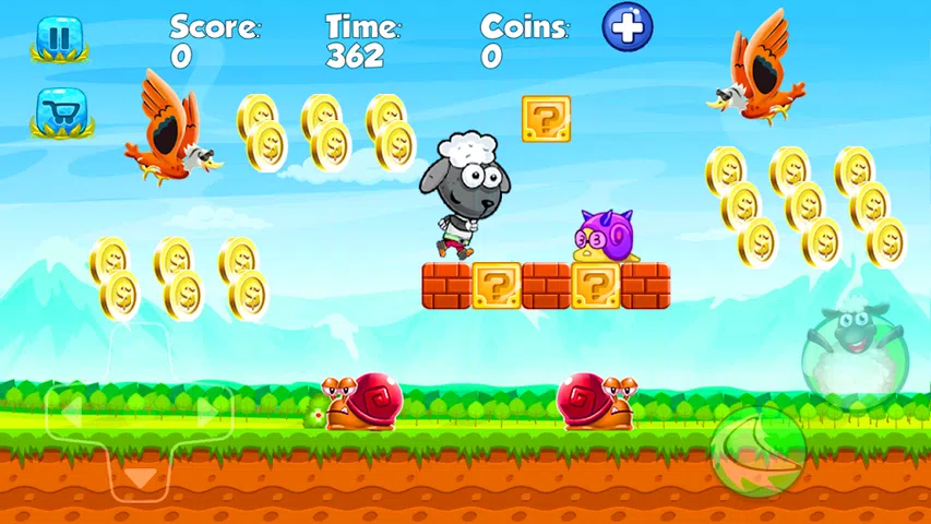 探索新游戏《绵羊奔跑》。您将通过不同世界的障碍运行免费的丛林冒险游戏。这个游戏适合所有年龄段,尤其是儿童。丛林世界冒险 入侵者绑架了公主后陷入困境。你将不得不攻击许多怪物,蜥蜴、青蛙、蜘蛛、狼、狗、长颈鹿、鳄鱼、鸟类等等。 《跑羊跑》有 80 个关卡,每个关卡都比其他关卡难。所以,你必须聪明才能赢得所有胜利。但您实际上不必担心,因为有一些优势可以帮助您完成救援工作。例如礼物中的力量可以将羊调整到更大的尺寸。走吧,冒险英雄们,做好准备并收集金币,因为它是你力量的关键,有助于你打败大怪物。 跑羊跑游戏特色: - 80 个免费挑战关卡。 - 精美的壁纸、图形和音乐。 - 每个20级都有一个独特的魔法世界。 - 许多东西可以提供帮助,例如礼物、鲜花、盾牌、隐藏方块。 - 与敌方领导人进行最终的艰苦战斗。 - 一切都是免费的,你不需要在这个游戏中支付任何费用。 - 神奇的绵羊游戏免费运行。 海洋水世界 - 跳跃、奔跑和游泳! - 尝试打开所有成就并成为游戏排行榜第一名! 怎么玩: - 只需点击屏幕即可让羊跳跃,双击即可跳高。 - 尽可能多地收集橙子,不要从地上掉下来。 - 跑到丛林尽头以通过关卡。 如果您喜欢慢跑、跳跃、冒险和整体游戏,您一定会喜欢这款游戏。这将是您最好的冒险之一。让我们向您介绍《小羊快跑历险记》中的魔法世界