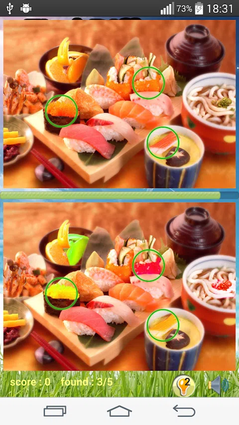 照片狩猎食物或发现不同的食物!听起来好吃吗? 这个版本包含了很多很棒的料理。 一个伟大的游戏来测试你的观察。 比较 2 幅图像并找出它们之间的 5 处差异。玩得开心