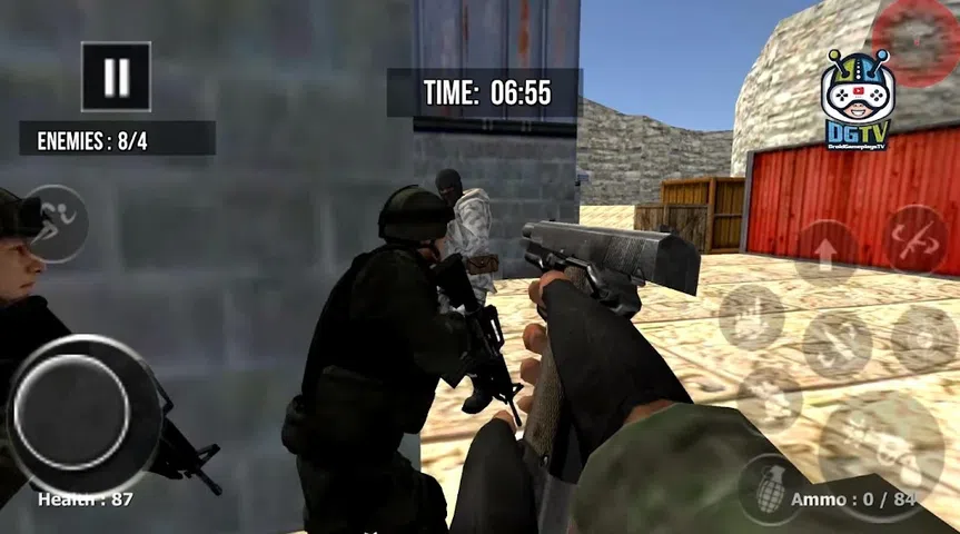 你是CF半条命射击游戏的疯狂粉丝吗? 为您创建的这款游戏:反恐袭击 - 打击射击游戏 《反恐袭击-打击射击游戏》是一款动作第一的射击战争游戏。 你是军队中勇敢的恐怖,旨在射杀蒙面、AK47、M4、携带破坏性武器的恐怖。 瞄准对手的要害部位进行射击,让那些凶猛的恐怖无处可逃。 你需要在练习中掌握各种有针对性的枪械射击,出色的精准打靶训练将有助于在边境射击战争中更好地消灭。 深入敌方控制区,扑灭并杀死恐怖,并记住,您在不同地方的反恐行动中的任务只是为了向射击。 打开镜眼,变焦识别目标,定位,瞄准,吸气,扣动扳机,射击,击杀。 怎么玩: – 选择模式和任务。装备武器 - 射击按钮进行射击,跳跃按钮进行跳跃,蹲下按钮,切换武器按钮,重新加载弹夹按钮。 – 根据雷达指令搜索目标。 —在规定时间内完成反恐任务。 – 靠近爆炸物包 游戏特色: – 10 张不同的地图 – 超过 40 个不同的任务 – 5 个不同的新设计的敌人 – 10 种不同的武器(下一版本将有 20 种)