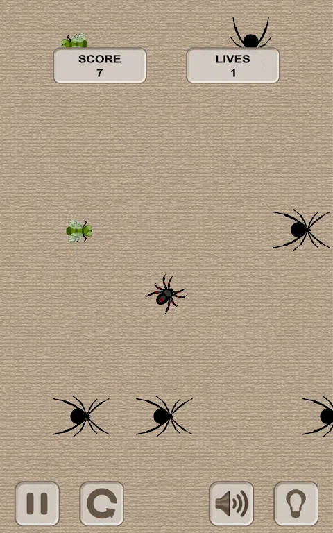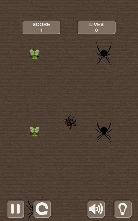 规则很简单: 点击更改方向。 收集苍蝇。 避免黑寡妇。 金苍蝇是额外的奖金。 他们给你的权利犯错误。 测试你的灵巧性