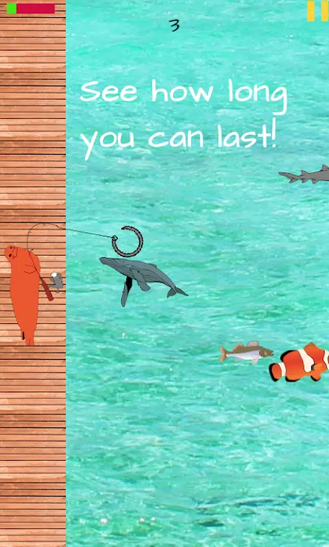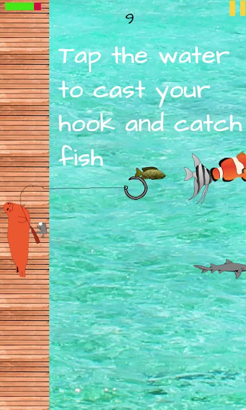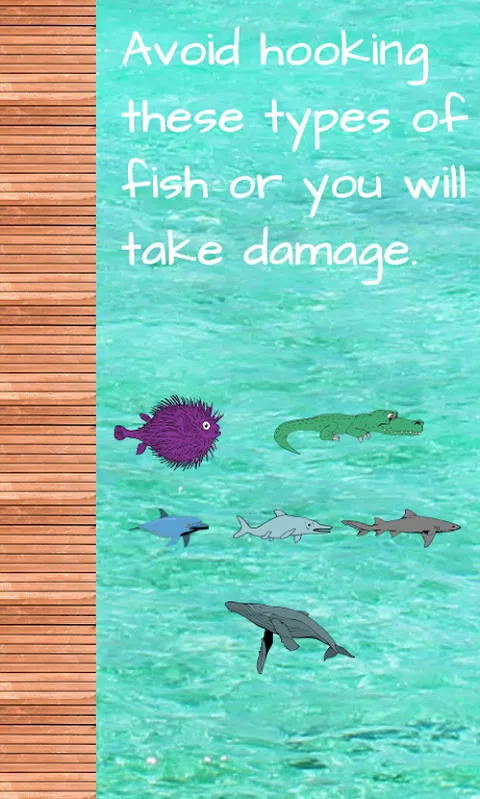 非常容易操作的钓鱼游戏,动动手指,便可以让你体验简单的钓鱼乐趣。 您可以自由移动钓鱼者的位置,使鱼钩更接近鱼群的为止。 每一次甩出鱼钩后,鱼钩会经过固定的时间收回。 帮助 *点击水来投你的钩子抓鱼 *点击木板路上下移动钓鱼者 *避免钩住这些类型的鱼,否则你会受到伤害 *如果时钟达到0,你将受到伤害,抓住一条鱼重置时钟并捕获多条鱼以获得健康 *看看你能持续多久