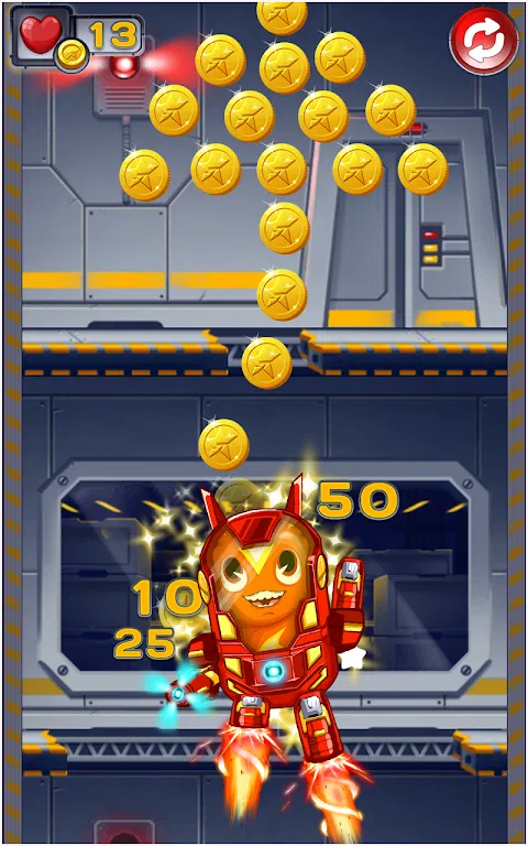 触摸屏幕,帮助我们的太空超级弹头变形金刚逃离这艘飞船,飞得更高。远离门,不要摔倒。 单击超级弹头变形金刚逃脱游戏。 简单但具有挑战性的游戏玩法需要您的快速反应。 每小时惊喜。 分享你的最佳成绩,挑战你的朋友