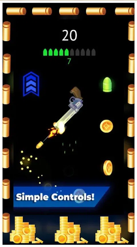 享受全新的现实物理游戏:使用你的回扣来飞行武器。射击并飞得尽可能高! Turn The Gun 收集了 15 种不同的武器等待您去发现,还有手机来继续您的迷人旅程。 你可以使用多种武器,你可以一路筹集资金并找到最适合你游戏风格的武器。 Turn The Gun 是一款适合每个人的令人上瘾的游戏。 玩这个游戏很容易。只需触摸屏幕和武器即可飞行!每把枪的子弹数量都是有限的。 因此,我们必须获得该轮中可以收集的子弹,以通过完整的子弹库存来转动枪。躲避障碍物,不至于跌倒。硝基标志通常有助于跳跃更多。 收集金钱来解锁所有武器