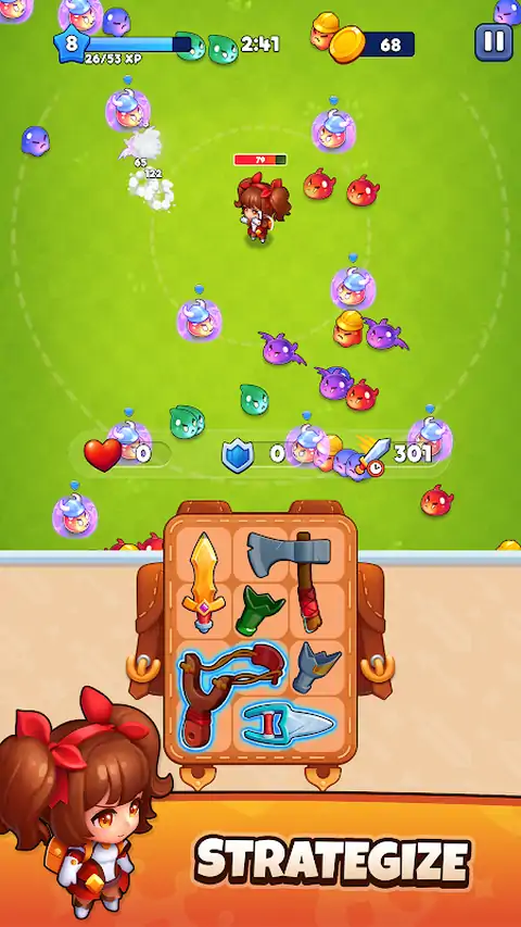 埃琳娜踏上史诗般的冒险,面对无尽的史莱姆大军!直接从她的背包中使用一系列古怪的武器,击倒你的粘糊糊的敌人。你能打败多少个史莱姆?现在就知道! - 快节奏的动作和惊心动魄的游戏 - 大量独特武器等你发现 - 与色彩斑斓的恶作剧史莱姆战斗 - 升级你的技能,变得势不可挡! 你准备好扔掉厨房水槽之外的所有东西了吗?让史莱姆杀戮开始吧!