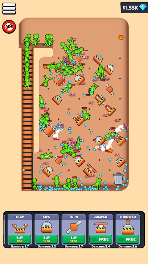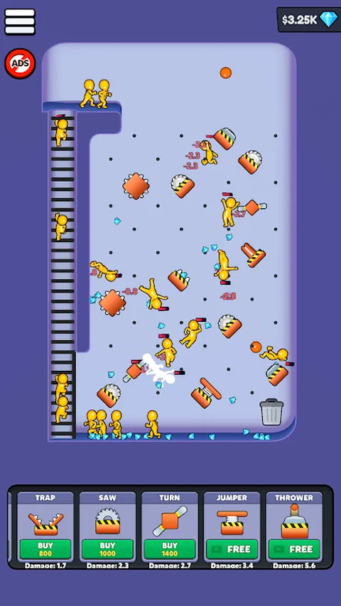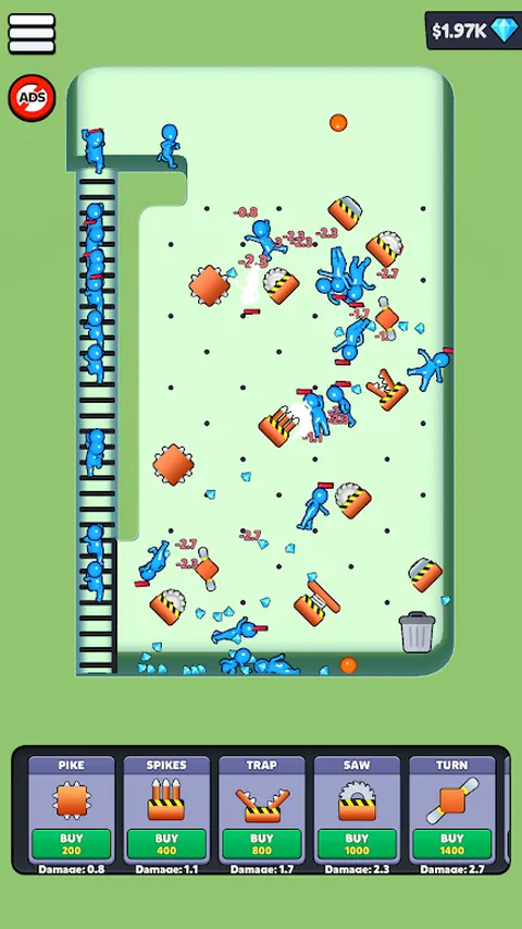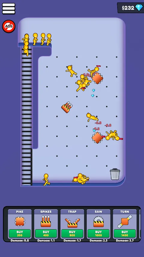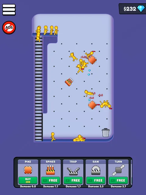 添加长矛、尖刺、陷阱、锯子和更多障碍物来设置您的轨道,以造成最大的破坏。当你造成伤害时赚钱,并购买新的障碍物,使你的赛道更加致命。纯粹的观看乐趣。