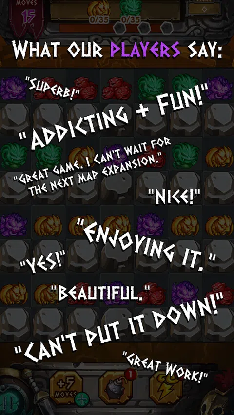 立即开始玩Hoplite Hero - 一款受到世界各地玩家喜爱的免费益智游戏。这款三消益智游戏正在迅速超越竞争对手! 在这个神话般的益智冒险中连接并组合彩色生物,以进入下一个级别。 当你的快速思维和聪明动作获得强大的多色冲刺和奇妙的连锁连击奖励时,享受那种令人满意的感觉! 独自进行这个神话般的益智冒险,或与朋友一起玩,看看谁能获得最高分! Hoplite Hero是完全免费的,但一些可选的游戏内物品需要付费。(您可以通过在设备设置中禁用应用内购买来关闭支付功能。) 重装步兵英雄特点: ● 神话般的游戏方式:得分、定时关卡、炸弹模式、摧毁生物、收集令牌、查找文物和破冰模式 ● 在激动人心的回家路上赢得星星,体验有意义的旅程! ● 每天玩游戏并发帖,有机会赢取大奖 ● 探索梦幻般的环境和身临其境的音乐 ● 强大的闪电、装满粉末的古代炸弹、不稳定的生物以及其他各种传说中的强力道具,以帮助您应对具有挑战性的关卡 ● 在这片神秘的土地上,您需要克服一百个具有挑战性的关卡,更多关卡即将到来供您享受 ● 使用Facebook登录并在排行榜上排名,以观看您的朋友和竞争对手! 关注我们以获取新闻和更新; 祝您玩Hoplite Hero游戏愉快