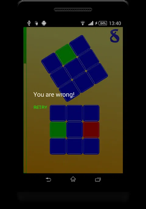 尝试猜测顶部形状的哪个正方形是随机选择的,然后在底部形状上单击相同的正方形。您没有太多时间,而且人形旋转得更快。训练你的大脑、记忆力、注意力、注意力