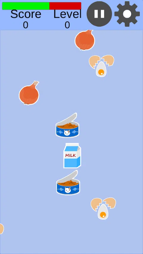 如果你点击掉落的食物并接受它,你的体力就会增加。 如果你点击了猫不喜欢的东西,或者如果你没有点击食物就掉落了食物,你的生命值就会下降。 如果体力耗尽,游戏就结束了。