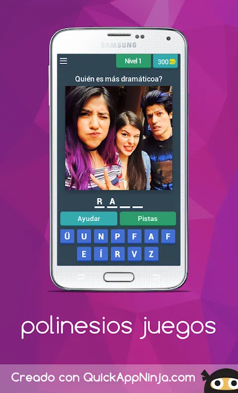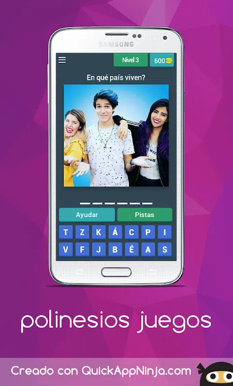 来自墨西哥最著名的 YouTube 用户 Los Polinesos 的问答! 你知道他们的一切吗?您订阅了他们的所有频道吗? 证明没有人比你更了解波利尼西亚人并到达 Polinesios Games 的终点! 你最喜欢谁?拉法、莱斯利、凯伦? 在您的手机上免费下载最好的波利尼西亚游戏,看看您是否是真正的粉丝