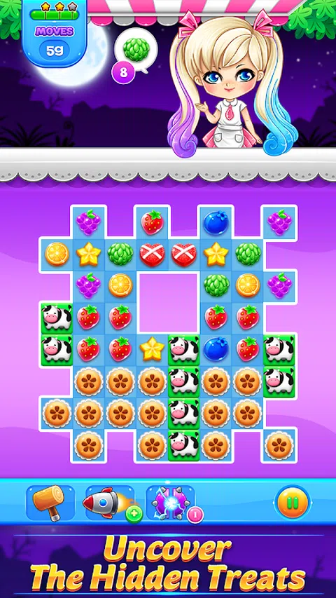 三消拼图 ● 粉碎4个相同颜色的美味水果,制成强大而疯狂的糖果。 ● 粉碎 5 个相同颜色的美味水果,制作非凡的退烧糖果。 ● T或L字符等连接水果将引发糖果狂热热潮。 ● 将 2 种特殊糖果组合在一起,制成超级美味的花朵爆炸。 多种令人上瘾的关卡 超过 150 个独特的关卡。经常回来查看免费奖励和新级别。 旋转每日助推轮以获得美味奖品 简单有趣的游戏 易于玩的界面,只需滑动并匹配。 女性游戏 许多女人喜欢的最可爱的角色,比如:猫、狗、熊猫、狐狸。还有美味香甜的水果:草莓、苹果、橙子、葡萄。 美味的糖果、包裹和条纹的特殊糖果、彩色炸弹和各种其他魔法助推器,以帮助完成具有挑战性的关卡 没有无线网络?没问题! 您可以离线玩这个游戏来放松。 和你的朋友一起玩 您可以与好友 Facebook 联系,分享分数并获取生命。 包含广告 游戏包含插页式广告和视频等广告。它是免费游戏,但您可以购买应用内物品,例如无广告和硬币