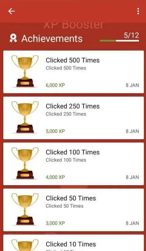 挑战自己,你有多少毅力。 XP Booster 3 具有一个简单的计数器,每次单击按钮时计数器都会增加。 看看你能在不生气的情况下点击多少。与您的朋友竞争,看看谁是最敬业的。 点击按钮获得大量 Google play XP。 XP的分布如下:- 10 次点击 - 2,000 XP 50 次点击 - 3,000 XP 100 次点击 - 4,000 XP 250 次点击 - 5,000 XP 500 次点击 - 6,000 XP 750 次点击 - 7,000 XP 1000 次点击 - 8,000 XP 1500 次点击 - 9,000 XP 2000 次点击 - 10,000 XP 3000 次点击 - 11,000 XP 4000 次点击 - 15,000 XP 5000 次点击 - 20,000 XP 让我们看看你能点击多少。