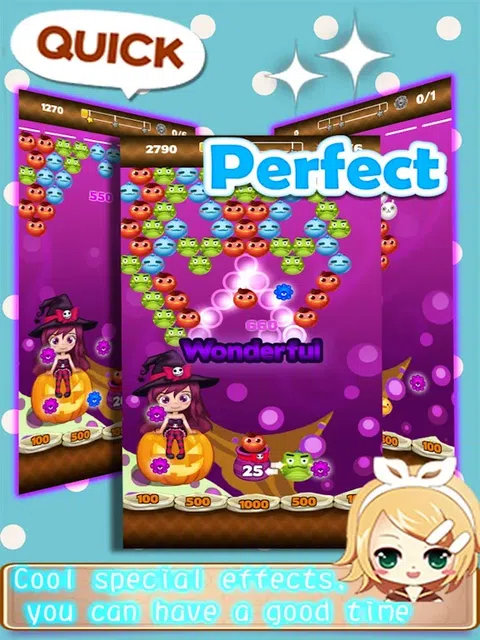 只要把你的手指移到下载键上并点击,你就能立即享受到这款叫做魔女泡泡龙大作战的游戏,她是一款制作精良、惊险刺激的好游戏,游戏的玩法很简单,只需发射泡泡击中其他泡泡,使同一种颜色的泡泡凑齐三个以上,然后你就能欣赏到激动人心的泡泡大爆炸了,怎么样是不是很有成就感?同时消除的泡泡越多,你的得分越高,是不是很简单,很有趣,很小清新? 超多神秘关卡等着你