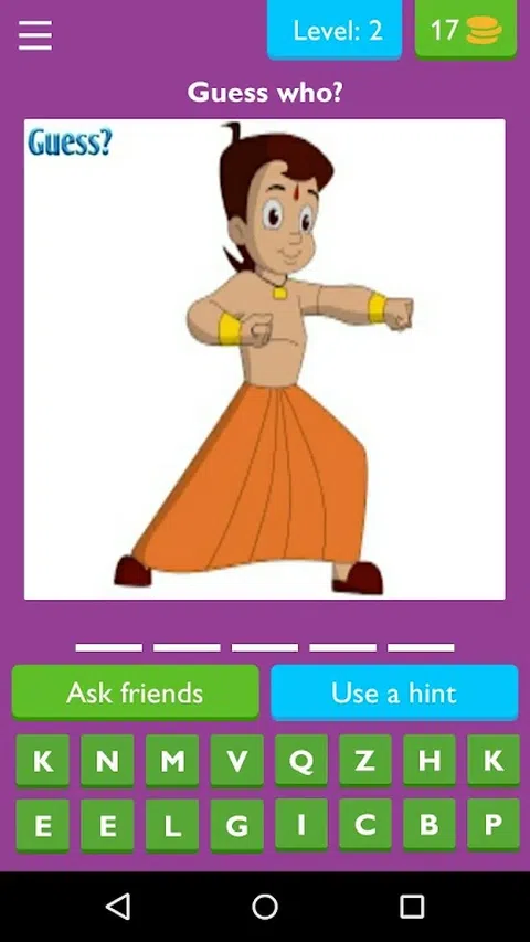 最好的 chhota bheem 猜名字 它包含 chhota bheem 的不同角色照片,你必须猜测他们的名字每个级别都包含每个角色 chhota bheem 粉丝的有趣游戏