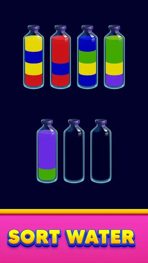 水分类是一款简单而迷人的益智游戏,您的目标是将有色水分类到正确的玻璃杯中。随着你的进步,谜题变得更加复杂,挑战你仔细计划每一步。看着颜色混合和分离,让您在解决每个级别时有一种平静的感觉。 怎么玩: • 点击任意一个玻璃杯,将水倒入另一个玻璃杯中。 • 仅当顶部颜色匹配且有足够空间时才倒入。 • 制定战略并提前思考,以避免陷入困境,但不要担心 - 您随时可以重新开始。 特点: • 轻松流畅的游戏体验,逼真的水流运动。 • 数百个级别,每个级别都比上一个级别更具挑战性。 • 匹配颜色以创建令人满意的和谐图案。 • 按照自己的节奏玩,没有时间压力或惩罚。 • 容易上手,但每个级别都将考验您的逻辑和注意力。 让自己沉浸在颜色分类的舒缓流程中。当您解决难题并观看颜色完美到位时,“水排序”为您提供平静而有益的体验。