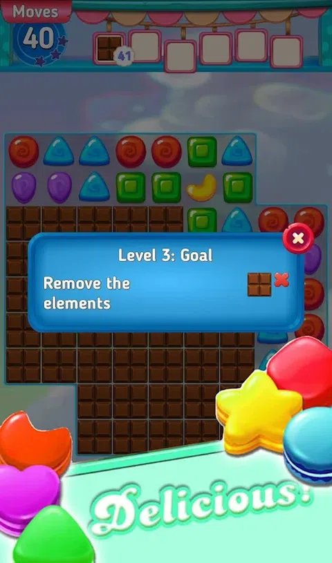 将 3 个和 3 个以上的球排成一行。 糖果游戏是一款有趣的三消游戏。如果你在一条线上射出 3 颗子弹,它就会变成一个十字。 只需滑动即可更改巧克力的位置。 安装小文件大小的游戏。 很酷的动画