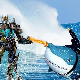 机器人 VS 鲨鱼: 继续这个终极使命并拯救世界。机器人正试图在这个星球上发动战争并摧毁这个星球上的所有生物。这些敌方机器人摧毁了许多行星并到达了地球。 你的职责是杀死机器人人类并拯救世界。这是机器人鲨鱼和机器人人类之间的战争。准备好感受终极刺激并拯救世界