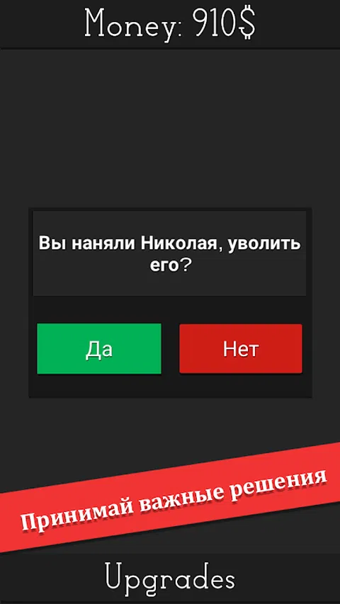 你好,未来的总监,在这个答题器中,你将扮演自己公司的总监的角色。雇用人员、组织公司活动、购买飞机和汽车