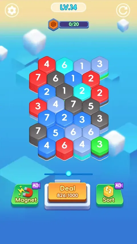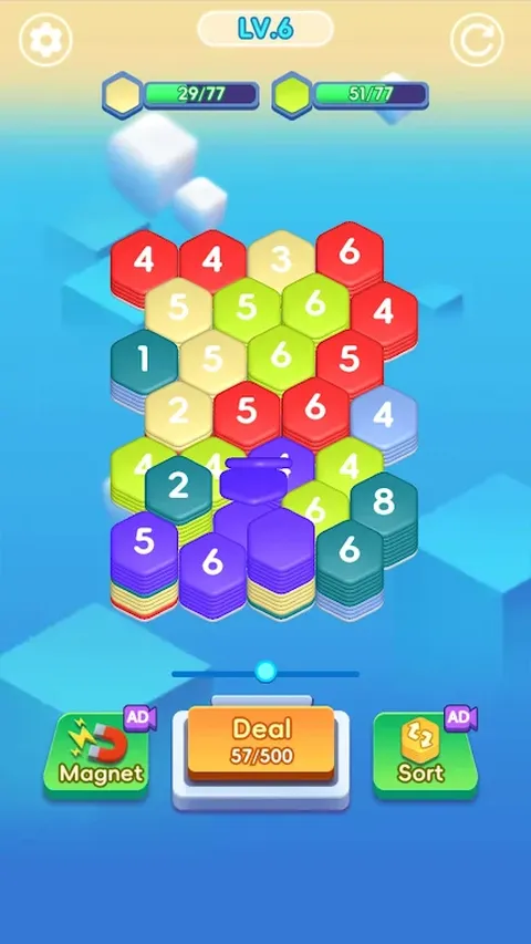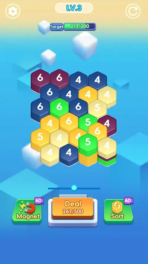 Hexa Clear 是一款六边形合并游戏,您可以在其中单击相同颜色的相邻六边形并消除它们。玩法简单,但也蕴藏着一个战略思维的世界,你需要仔细考虑每一步才能成功。准备好挑战自己并征服六边形拼图!