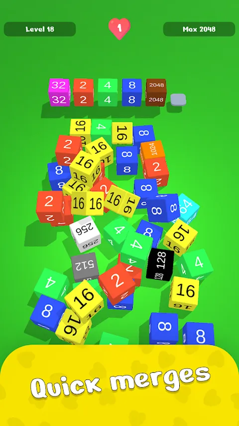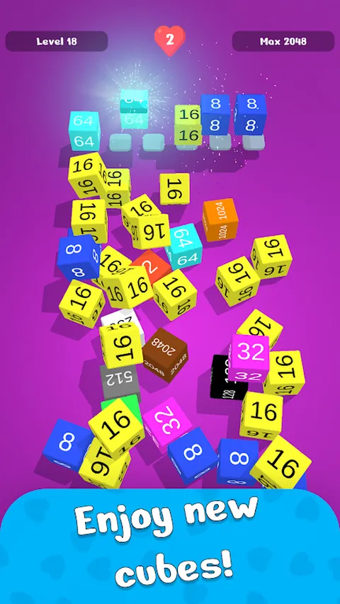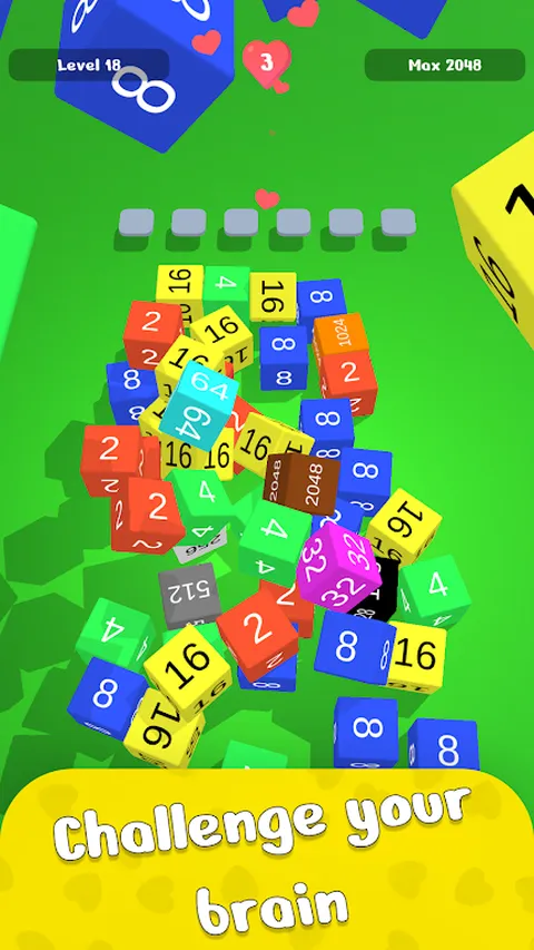 找到并组合具有相同数字的立方体。获取您能达到的最大数字的立方体。别着急,你有 3 条命。尽量不要犯错误