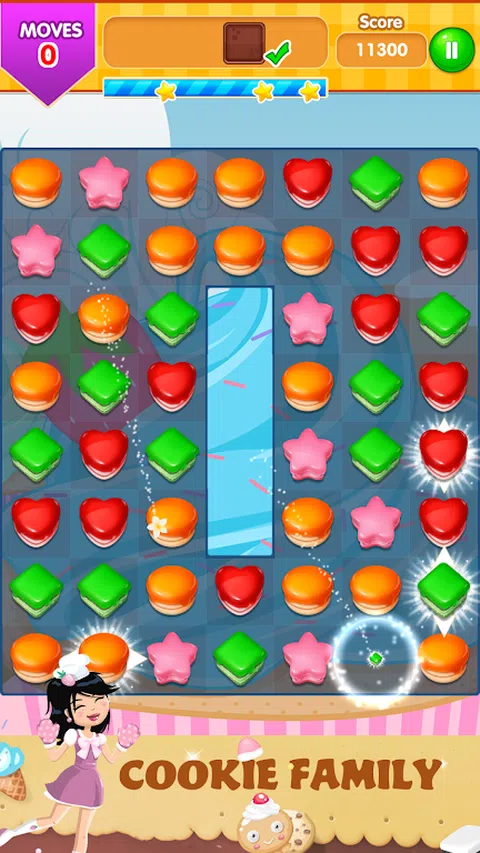 Cookie Family 是一款全新的三消益智游戏。用相同颜色的饼干做一条完整的线来压碎它们。曲奇家族将为您带来充满挑战的精彩旅程,开启曲奇色彩缤纷的新世界。 * 新的功能 * ★ 美丽的图形和许多饼干颜色。 ★ 各种玩法真棒。 ★ 多层次的挑战性任务! ★ 易学难精。 ★ 超过 100 个令人上瘾的挑战关卡! ★ 甜美可口的饼干。 ★ 上手容易,精通难。 怎么玩: ★ 将 cookie 连接成 3 个或更多相同颜色的组