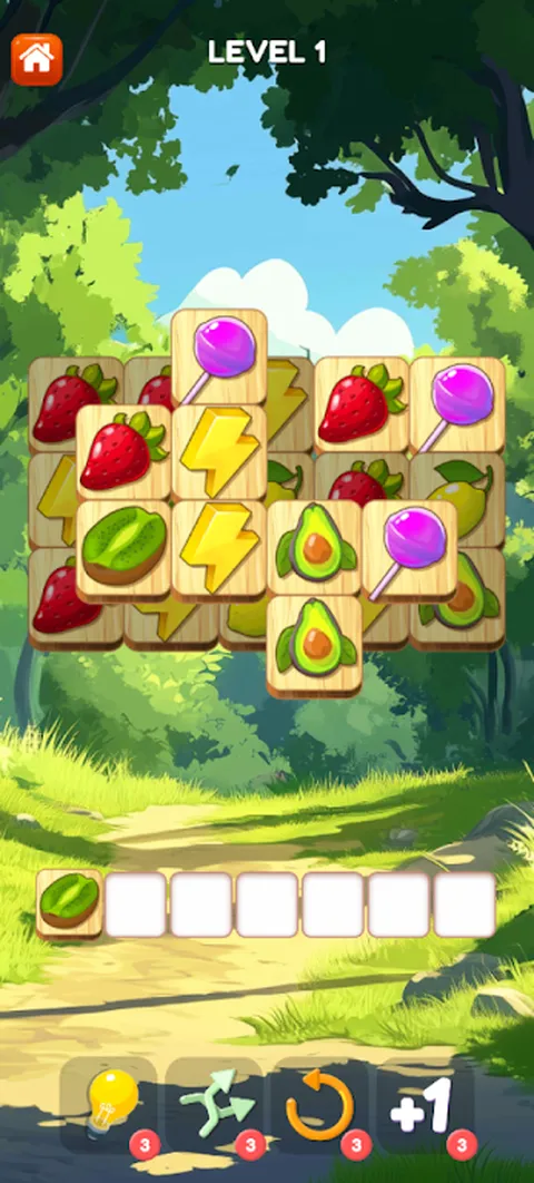 水果麻将牌是麻将纸牌的变体。 玩法: - 收集 3 个相同的方块 - 移除比赛场地上的所有方块。你赢了 特点: - 你可以免费玩 - 对于通过的每个级别,我们都会给予金币 - 我们每 2 小时赠送一次硬币 - 观看广告可以获得金币 - 您可以获得游戏币的助推器 - 无需网路即可离线玩