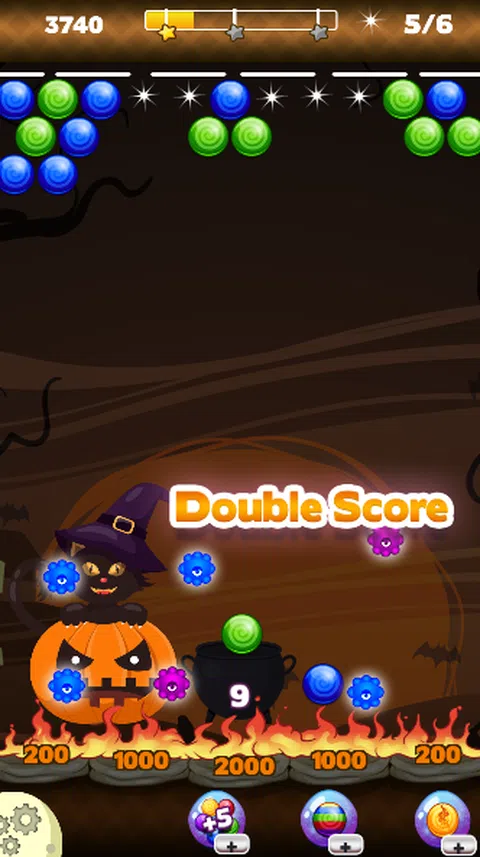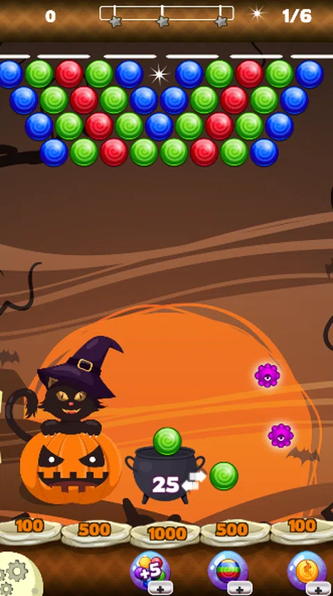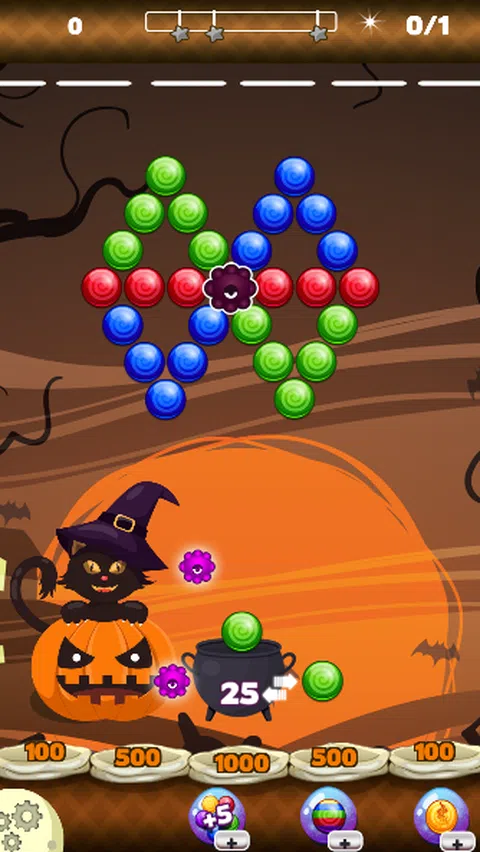 如何玩万圣节派对。 - 只需匹配 3 个或更多相同颜色的物体即可获胜! 有 50 多个级别可以增加您的逻辑。 如果您认为自己很聪明,那么这里有一些聪明的概念,可以用更少的球赢得比赛
