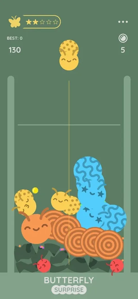 让五颜六色的毛毛虫落在彼此的上面。创造越来越大的毛毛虫,并获得稀有蝴蝶作为奖励。