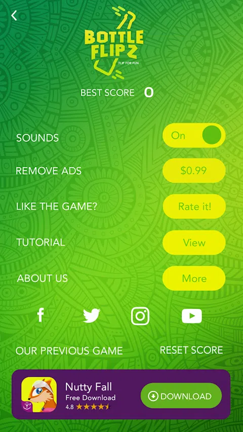 新的激动人心的游戏 BOTTLE FIPZ Bottle Flipz 是一款有趣且引人入胜的全新游戏,具有出色的艺术作品和极具挑战性的关卡,优美的娱乐音乐将让您永远点击和翻转! 你的角色是翻转瓶子并降落在你的健康上。收集硬币来解锁新的美丽皮肤瓶。确保您没有击中敌人并尽可能高地翻转以获得每个级别的更高分数。 > 如果您愿意,可以通过观看广告获得免费金币。 > 如果您选择观看广告,如果遇到任何级别的瓶颈,请继续。 > 每个瓶子都有独特的颜色和火焰效果。 跟着我们: 从我们的游戏中获得精美的游戏和免费的游戏资产,例如硬币包、免费付费角色解锁和其他好东西