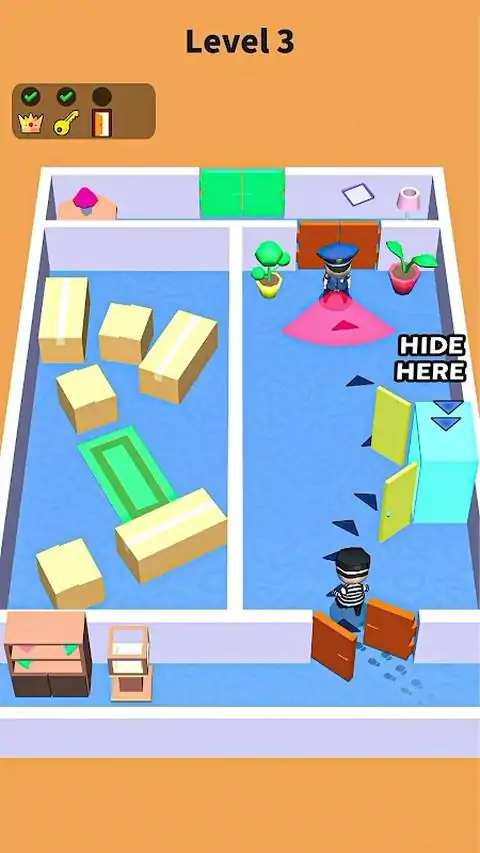 糟糕!门在哪里?偷珠宝?,解锁门?,在不被守卫抓住的情况下逃脱?。 怎么玩: 移动小偷:滑动以潜行穿过房间?。 寻找钥匙:收集钥匙?以解锁门并取得进展。 躲避守卫:躲在家具?后面或壁橱?中。 观看摄像头:远离他们的红灯?,以避免被发现。 收集珠宝:在每个关卡中收集所有闪亮的宝石?。 使用道具:打破墙壁,冻结守卫,并禁用警报?。 你能智胜守卫,完成完美的抢劫吗??