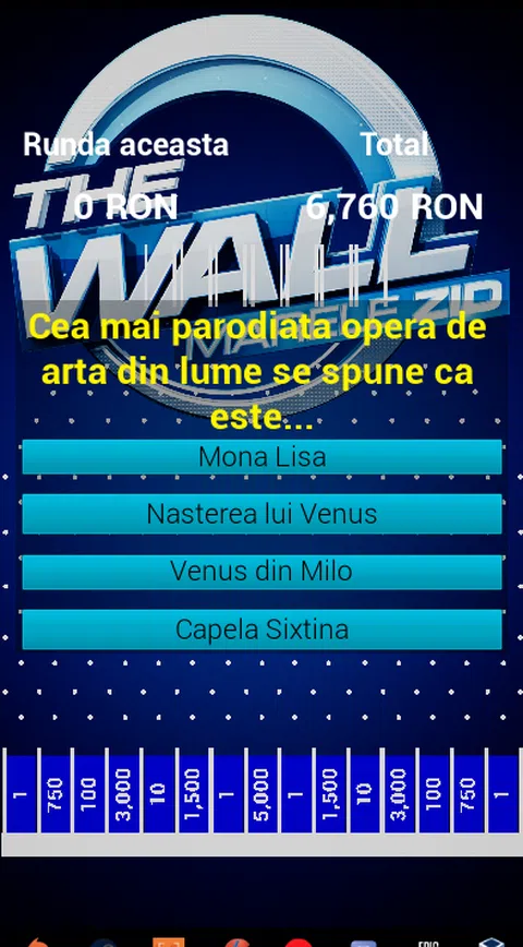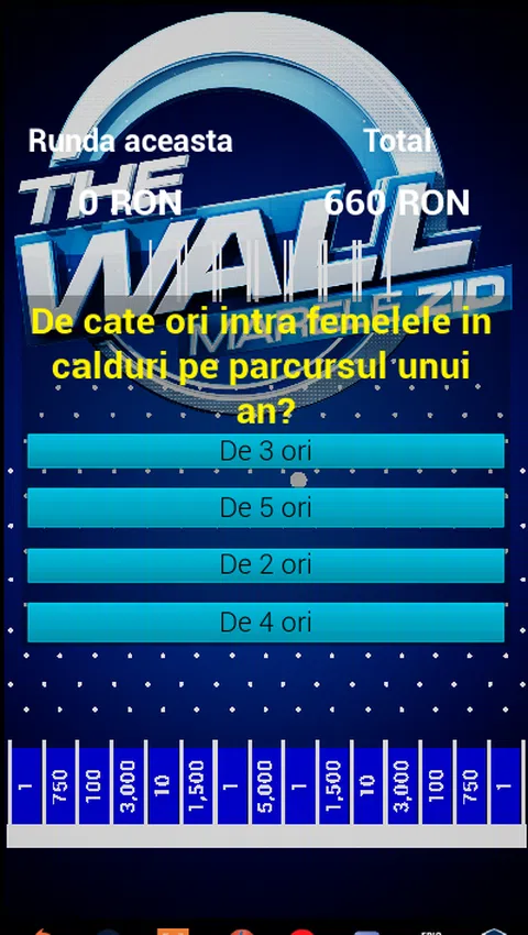 长城 - 长城是一款非常具有挑战性和令人上瘾的一般文化游戏。 游戏规则: 第1轮 : 4 个简单问题即可赢得 15,000 奖金 第二轮: 您必须选择 3 个绿球落地的位置(请记住,在回合结束时,3 个红球也会落地),可能赢得 120,000 奖金 3 个问题,可能赢得 120,000 奖金。 第一个问题不能加倍或加倍。 对于第二个问题,你可以将弹珠加倍。 在第三个问题上,你可以将弹珠增加三倍。 在第二轮结束时,跟随 3 个红球(它们会从您在本轮开始时选择的球掉落位置掉落) 第三轮: 您必须选择 4 个绿球落地的位置(请记住,在回合结束时,4 个红球也会落地),可能赢得 450,000 奖金 3 个问题,可能赢得 450,000 奖金。 第一个问题不能加倍或加倍。 对于第二个问题,你可以将弹珠加倍。 在第三个问题上,你可以将弹珠增加三倍。 在第 3 轮结束时,跟随 4 个红球(它们将从您在本轮开始时选择的球掉落位置掉落) 如果您对调整还有其他想法,欢迎留言评论! 该游戏与电视剧《The Wall!》无关! 游戏是虚拟货币
