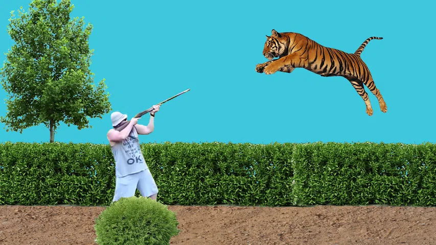 我把老虎打得太惨了,我摔倒了
