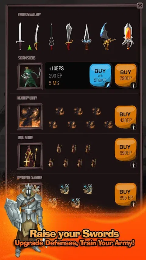 从腐败霸主的愤怒中拯救美丽的魁尔斯。你美丽的家园在燃烧,因为邪恶的军队掠夺了这片土地。 购买大量升级品来升级您的基地,解锁从近战和远程到传奇生物的单位类型!明智地投资您的影响力和进化点数,并组建最令人畏惧的军队来消灭腐败的霸主并将他们驱逐出魁尔斯。升级你的剑以大幅增加你的点击伤害。 以影响力从商店解锁额外的升级!解锁自动命中、法力激增、鲜血狂潮、巨龙火焰保护以及更多!