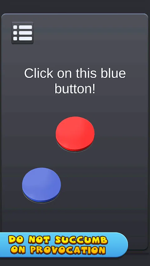 不要点击这个有趣的红色按钮;不要在我们新的恶作剧模拟器中按下它。嘿!你能听到我吗?我刚才已经告诉过你了:不要压它!好的。你刚刚参与了一场有趣的恶作剧。 红色按钮:不要点击它是一个恶作剧模拟器,这会给你带来很多乐趣。 这个模拟器有漂亮而简单的图形。它将让您进入一个带有红色按钮的对话框。你会花很多时间按下这个红色即使按钮说:不要按下它,有时你不应该听并仍然按下。我们的模拟器中的红色按钮可能会改变其形状,让您执行一些任务,例如按下一段时间或按下另一个按钮