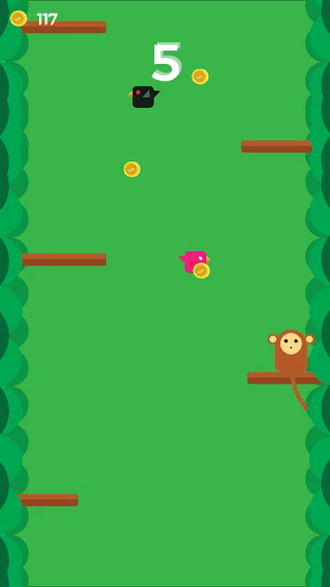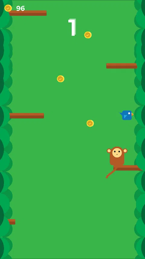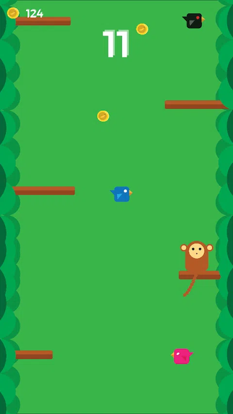 帮助猴子攀爬并抓住香蕉币!但要小心,不要碰触任何鸟类