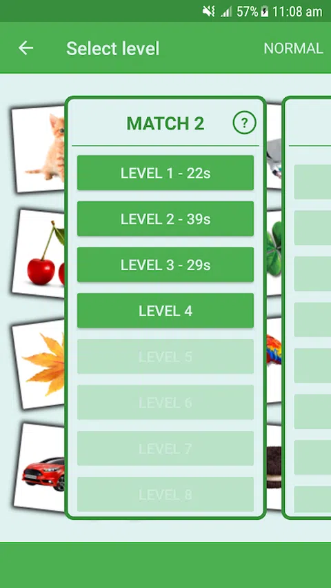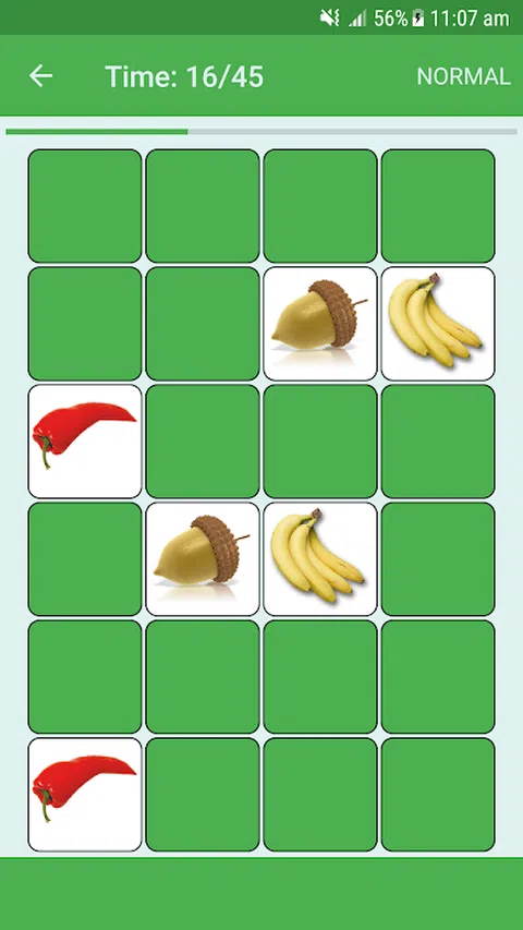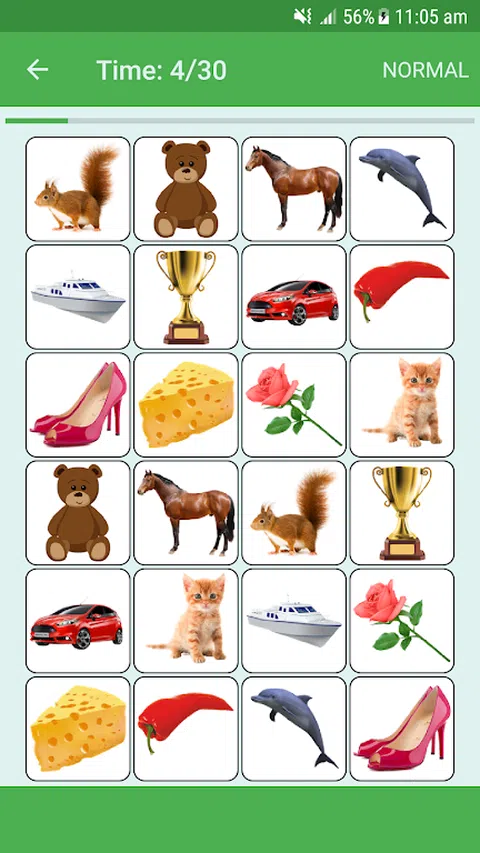 不同图像的图块以随机顺序排列,您必须触摸每个图块并记住它有哪些图像,然后触摸具有相同图像的其他图块
