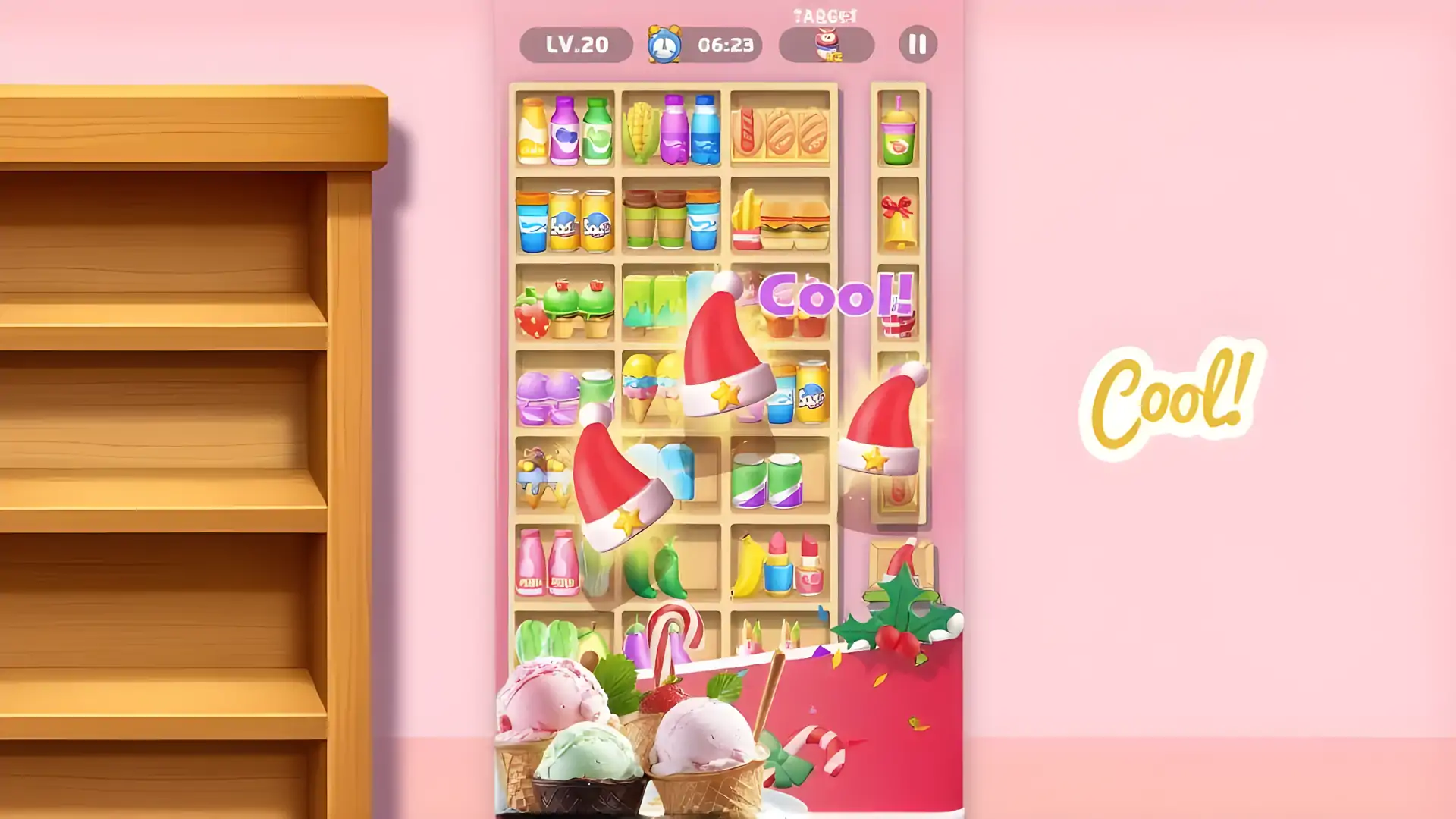 准备好在 Goods Fever 中开始一场前所未有的激动人心的匹配冒险!这款游戏提供了各种水果、糖果、蔬菜和动物玩具的精心呈现,使其对休闲游戏玩家和益智爱好者都具有吸引力。 游戏特色: - 精美原创的游戏设计,匹配关卡。 - 逼真的产品展示,让您感觉仿佛置身于现实生活中的购物场景。 - 丰富的道具和金币奖励,确保更愉快的游戏体验。 - 简单的游戏玩法和高水平的挑战相结合。 怎么玩: - 点击不同架子上的任意三个相同的物品来创建 3 个匹配。 - 匹配 3 个商品以创建强大的组合并获得奖励积分。 - 有策略地使用道具和助推器来克服障碍并清除关卡。